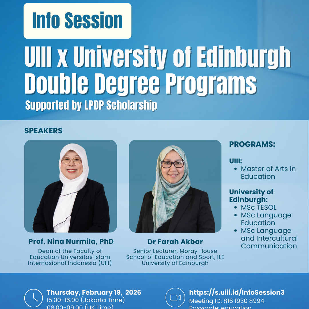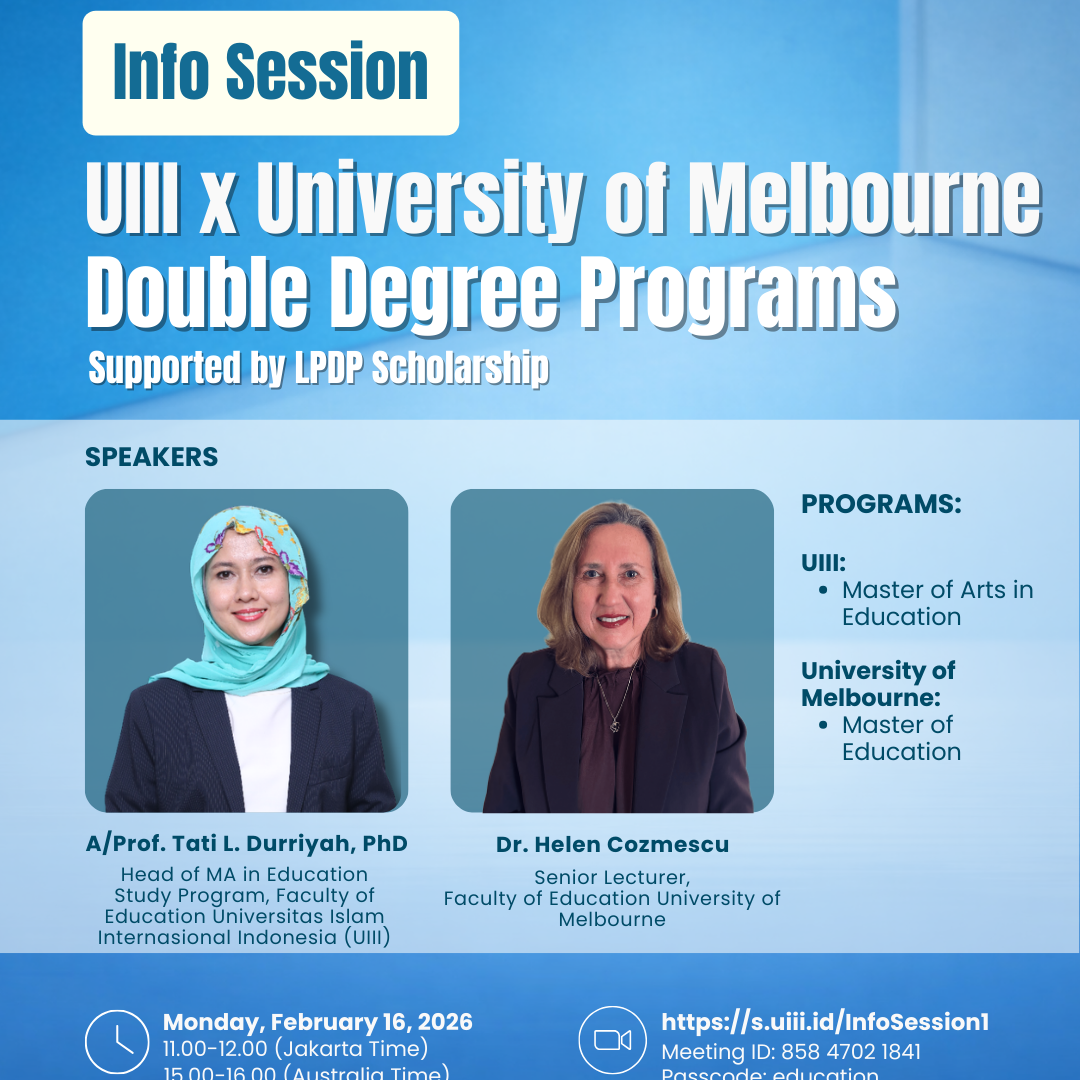 Browse our calendar of academic events, workshops, and seminars hosted by the Faculty of Education at Universitas Islam Internasional Indonesia. Engage in enriching discussions and broaden your educational horizons.