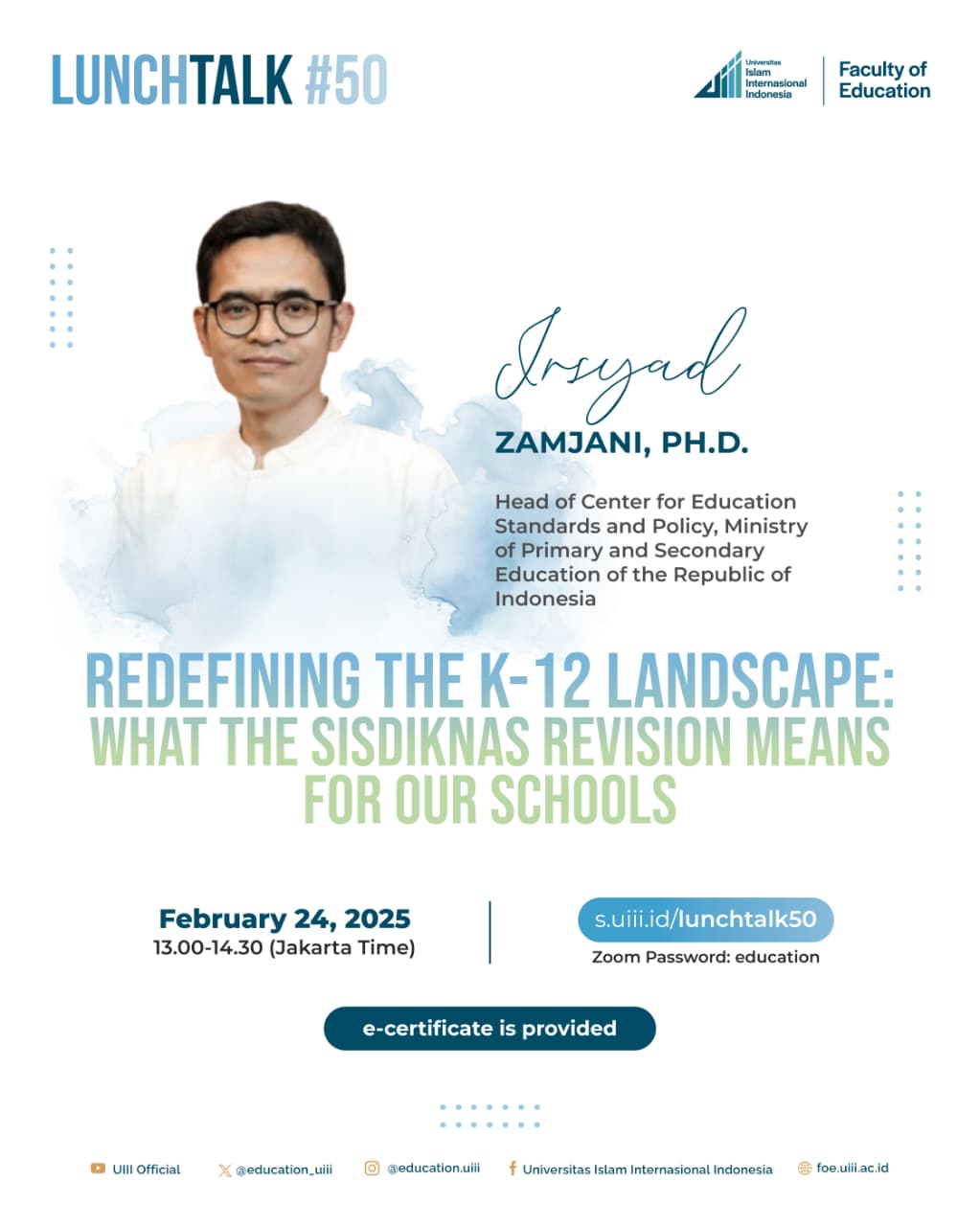 You are invited to join the Lunch Talk #50 at the Faculty of Education, UIII