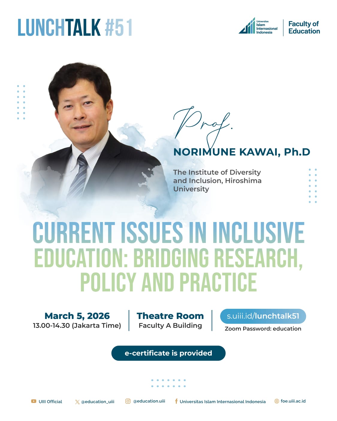You are invited to join the Lunch Talk #51 at the Faculty of Education, UIII