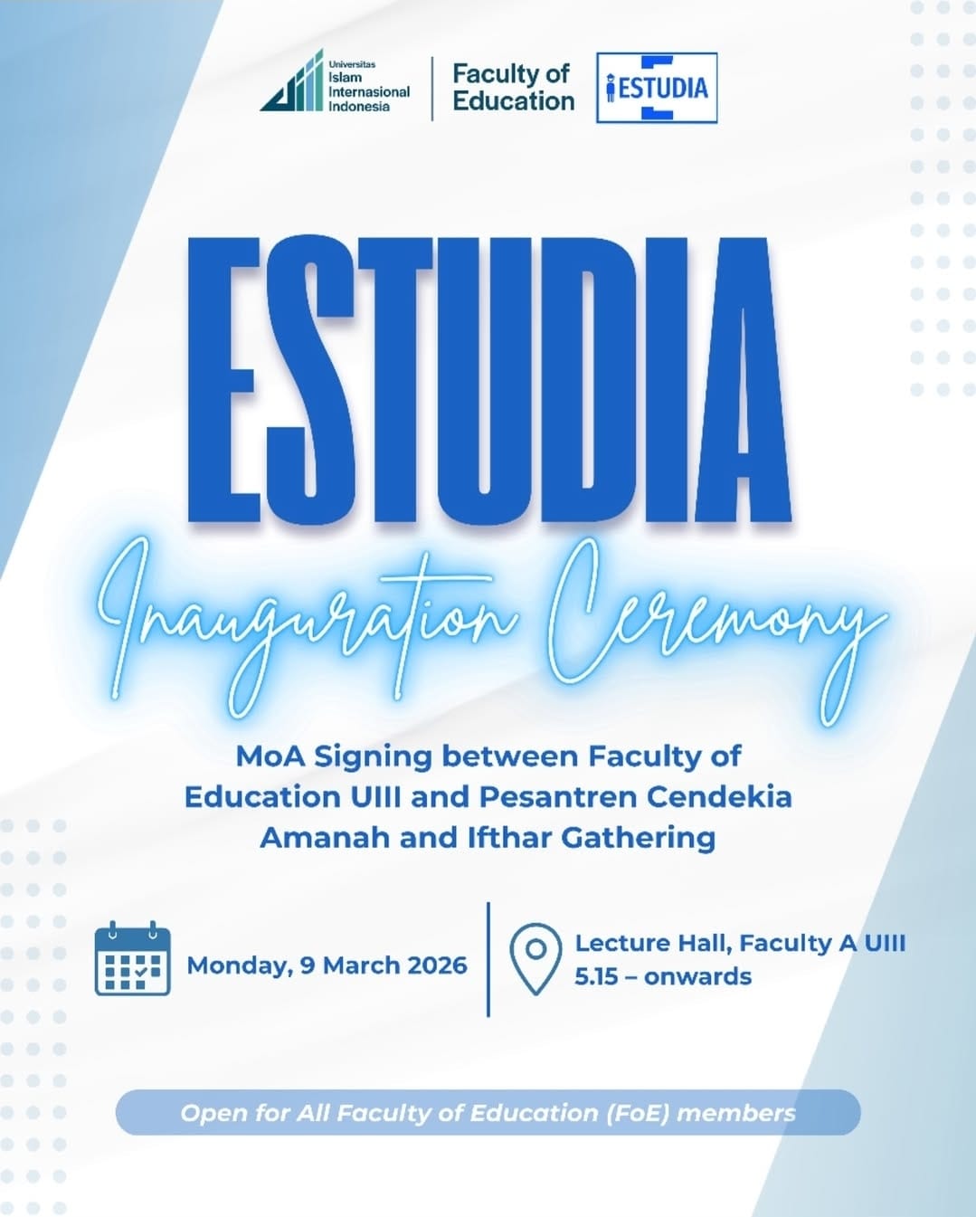 Through this iftar gathering, we also celebrated the inauguration of the new leadership of Estudia, the student organization of the Faculty of Education at the International Islamic University Indonesia.