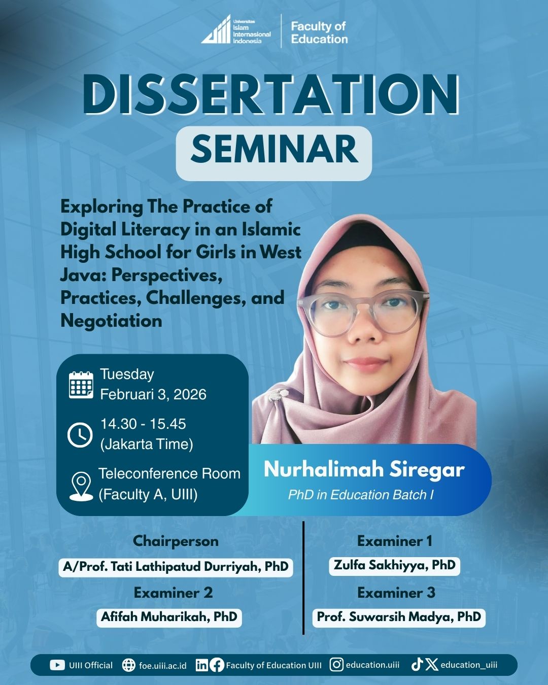 On December 16, 2025, the Faculty of Education from Universitas Islam Internasional Indonesia conducted a community engagement visit to Madrasah Aliyah Negeri in Cilegon. MA Batch 4 and PhD Batch 3 students, along with lecturers and faculty staff, visited the school as part of their commitment to maintaining a beneficial relationship with the local community. During this brief visit, the lecturers and students conducted short learning sessions with the hope of benefiting the local students.