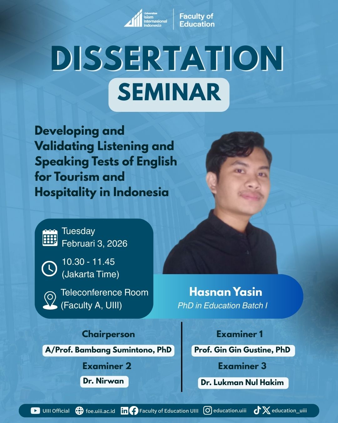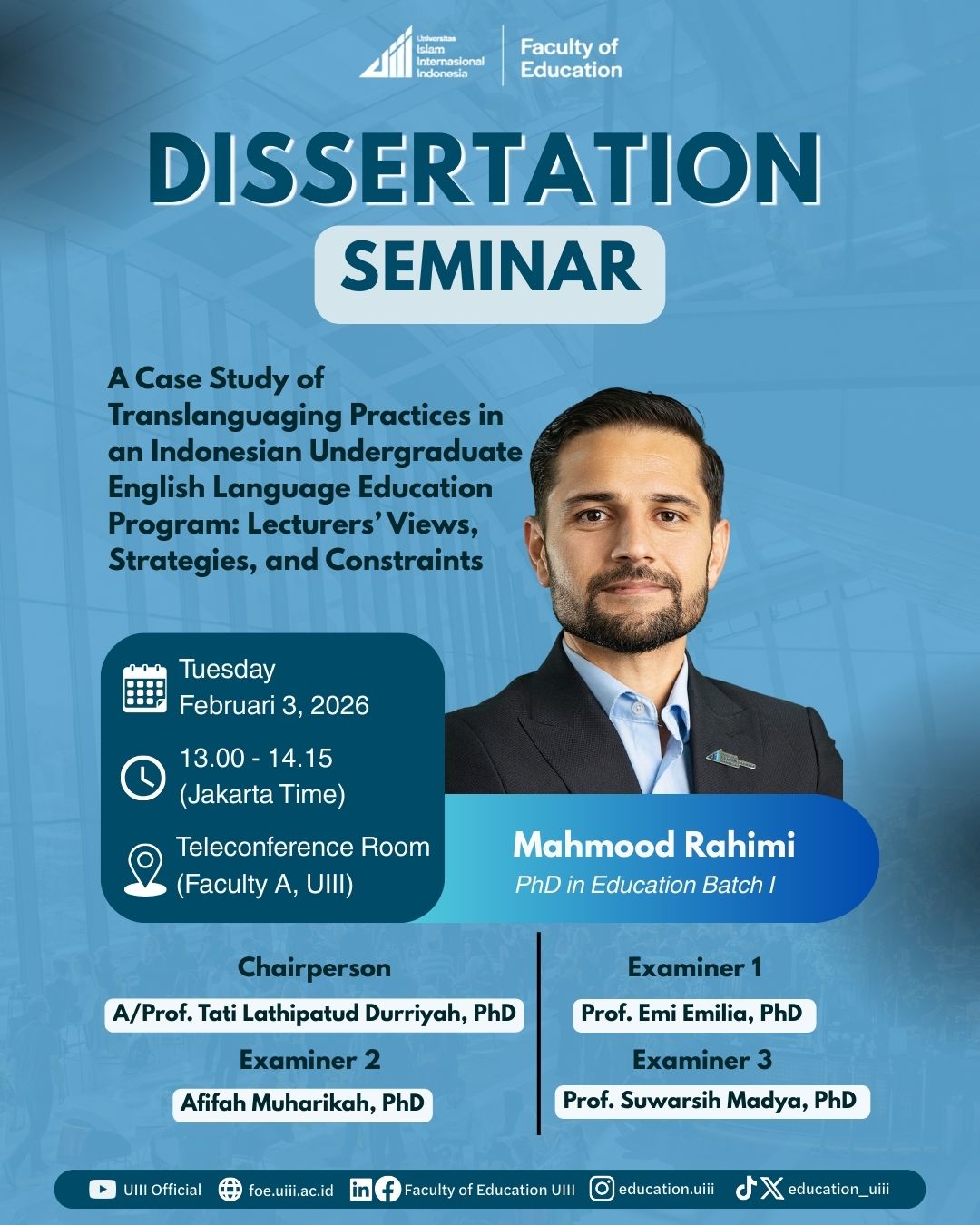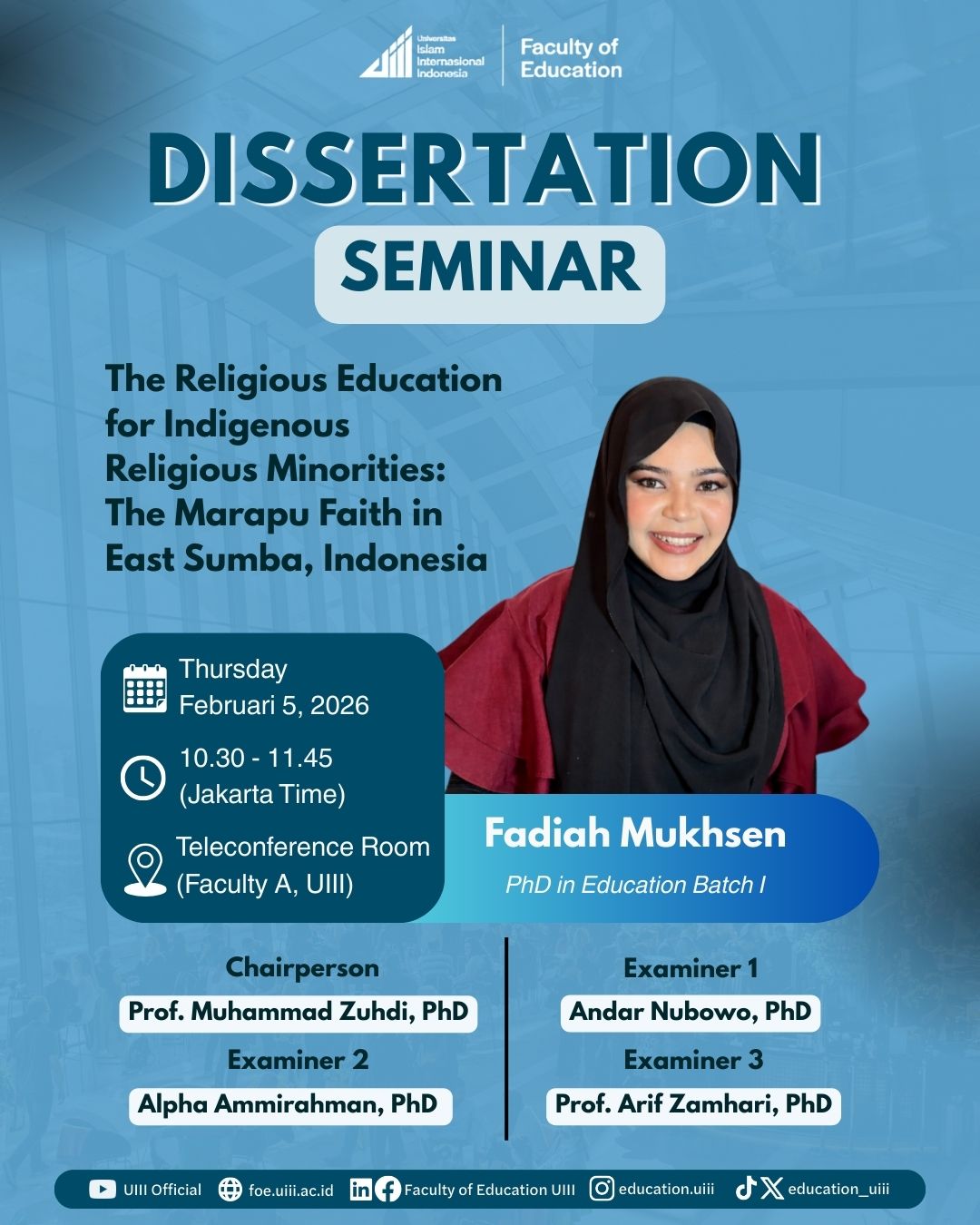 The Faculty of Education at UIII invites all Ph.D. holders to participate in the Scholar-in-Residence (SIR) 2026, Batch 8 & 9 program, to spend three months as a research fellow.