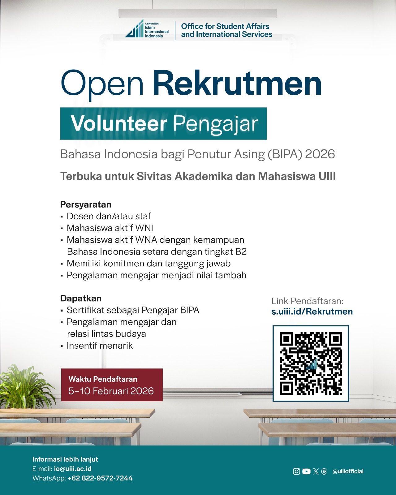 Open Rekrutmen Program Volunteer Pengajar BIPA (Bahasa Indonesia bagi Penutur Asing) UIII 2026