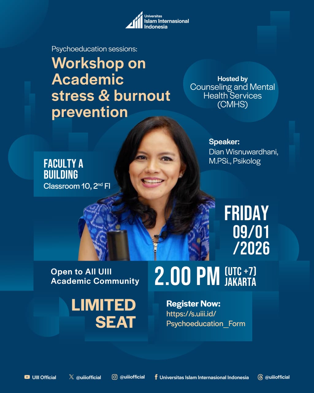 We are pleased to announce that the UIII Counseling and Mental Health Services (CMHS) will organize the Psychoeducation Sessions: Workshop on Academic Stress & Burnout Prevention, which will be held on: